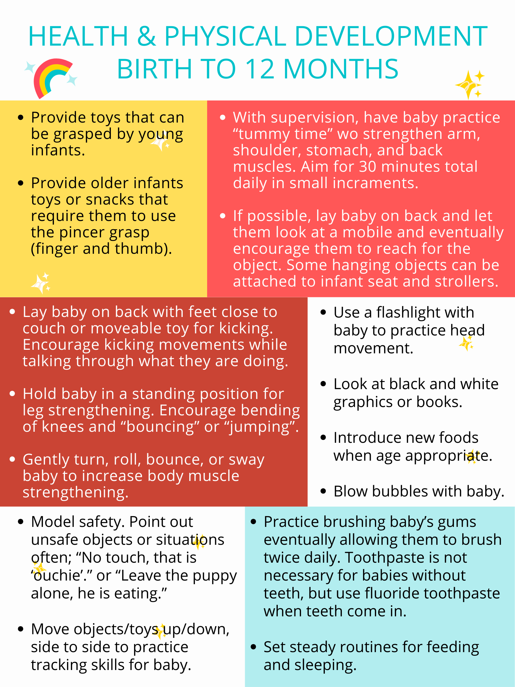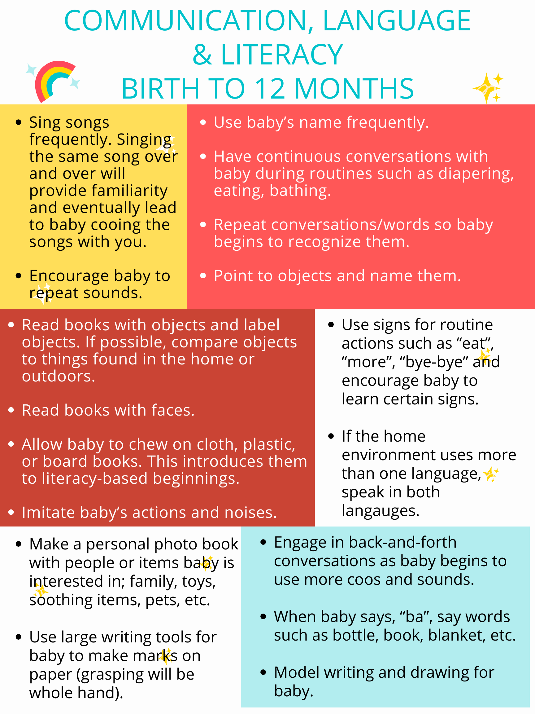 Activities for children birth to 12 months.
